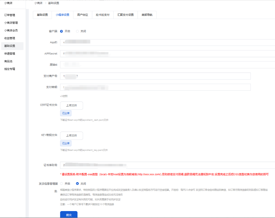 开启后,中台小程序会员中心显示小商店入口;