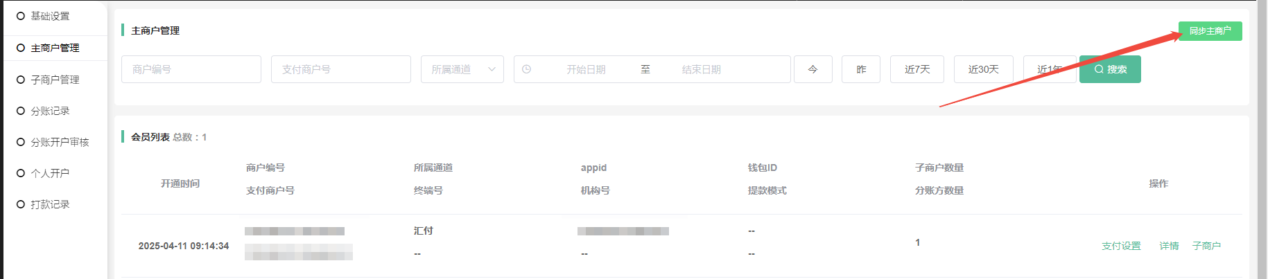 开户账户下来之后,需要先配置数据通系统,然后再到系统--支付方式--聚合支付--同步商户信息