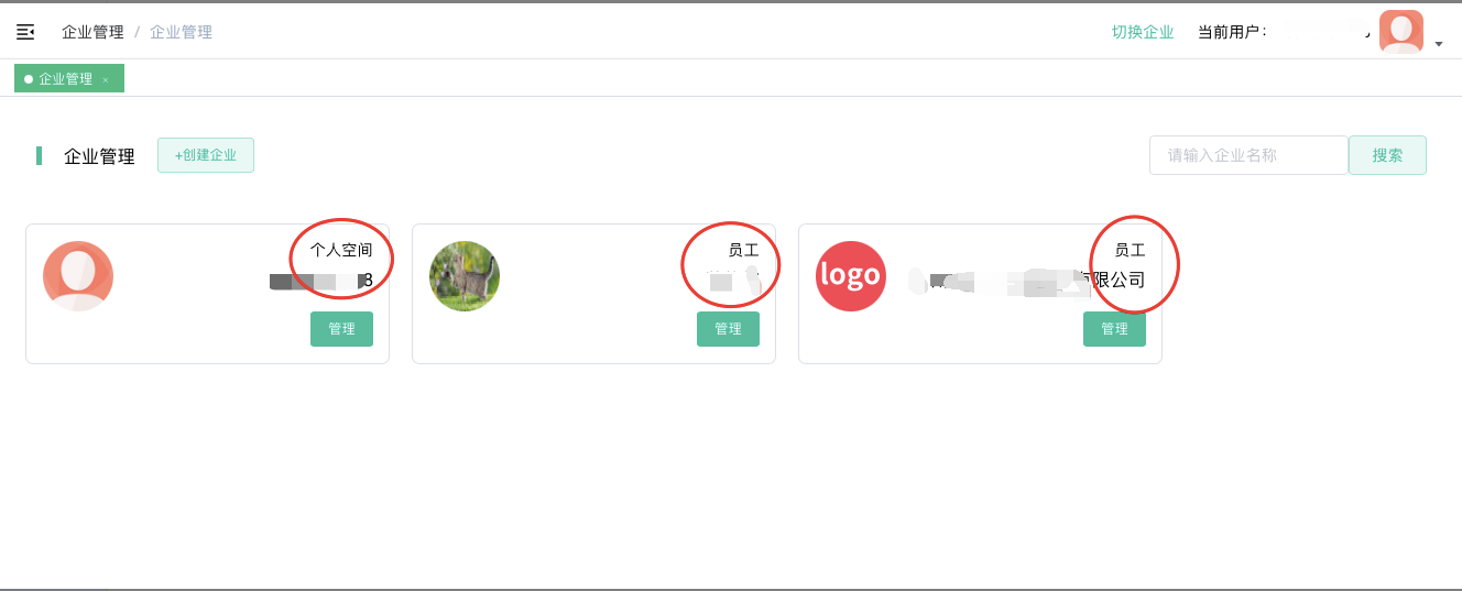 设置员工为管理员:右上角切换企业