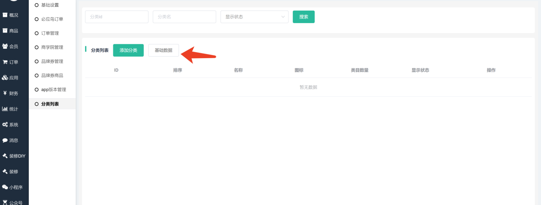 PS:如基础数据还在更新中,请勿添加新分类。